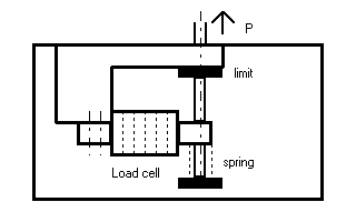 R(3;E;70;110;100;130) R(3;E;100;100;160;140) R(3;E;160;110;190;130) L(DT;110;100;110;140) L(DT;120;100;120;140) L(DT;130;100;130;140) L(DT;140;100;140;140) L(DT;150;100;150;140) L(DD;180;10;180;160) L(3;200;40;200;60;100;60;--> ...100;110;50;110;50;40) L(DD;80;100;80;140) L(DD;90;100;90;140) L(2;175;20;175;40) L(2;185;20;185;40) R(1;F;160;60;200;70) R(1;F;160;160;200;170) L(2;200;30;200;10) R(2;E;175;70;185;110) R(2;E;175;130;185;160) L(2;190;20;200;10;210;20) L(DT;170;130;170;160) L(DT;190;130;190;160) T(M;220;30;"P") T(M;100;160;"Load cell") T(M;200;150;"spring") T(M;210;70;"limit") |
